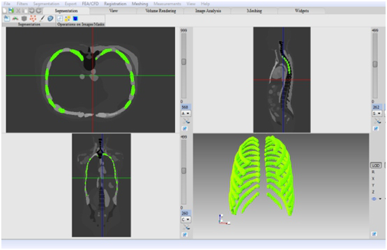CT data of healthy adult male was imported into imagesim & the geometry of the components of whole model were reconstructed from CT data using imagesim. The model consists of geometrically detailed liver, rib cage and lungs.